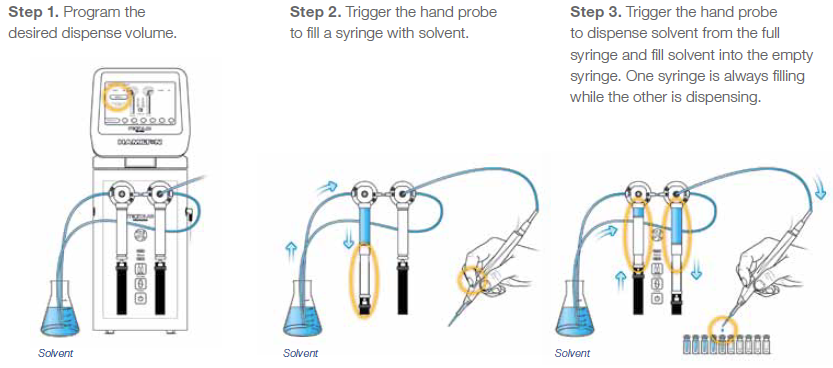 The Single, Dual and Continuous Syringe Dispensers offer flexibility and customisation to meet your lab's dispensing needs