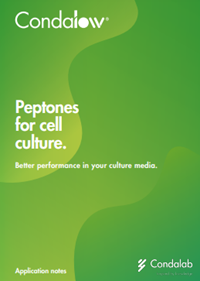 Condalow is the new line of peptones used in cell culture by Condalab for cases where endotoxin concentrations play a crucial role in the success of the process. These products maintain all their nutritional properties and growth factors to provide a unique development in your culture media. The revolutionary process obtains hydrolysates from different protein sources to provide nutrients and growth factors that are essential for the development of cell cultures. When this is added to a fermentation medium, the low endotoxin concentration and high nutritive capacity produces high cell densities and optimises performance in bioprocesses.