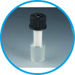 Combination of a borosilicate glass piece with ground joint, an interior PTFE shaft guide with integrated special gasket and a GL screw cap made of PPS. The special gasket made of PTFE and an FPM o-ring which is compressed by a GL screw cap provide a good sealing of the stirrer shaft. This gasket can be exchanged after wearing. Suitable for vacuum, perfect bearing for stirrer shafts made of stainless steel, glass and for BOLA Stirrer Shafts.
