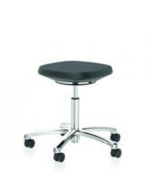 The space-saving laboratory stool is a good solution for short-term sitting. The black integral foam cushion is very comfortable. The release ring enables infinitely variable seat height adjustment.