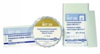 This test paper allows the quick and easy detection of strong oxidizers such as nitrite and free chlorine. Potassium iodide starch paper is also used to control diazotization reactions. Nitrite or free chlorine oxidize potassium iodide to form elemental iodine which reacts with starch to a blue-violet complex. Potassium iodide starch paper may be used by dipping it into the sample or by applying drops of the sample onto the paper. To detect gaseous oxidizers, the paper is moistened with distilled water and then exposed to the gas in question.